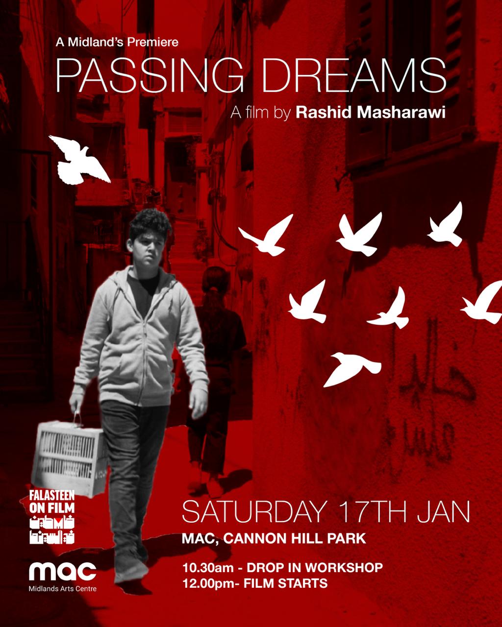 Join us for a Midlands Premiere of Rashid Masharawi’s 2024 Passing Dreams, a deeply moving film that follows a young boy and his uncle in search of his missing bird across various Palestinian cities. The film will be preceded by a creative workshop led by multi-disciplinary artist Sharonjit Kaur Sutton, where you can craf your own origami pigeon hanging decoration.